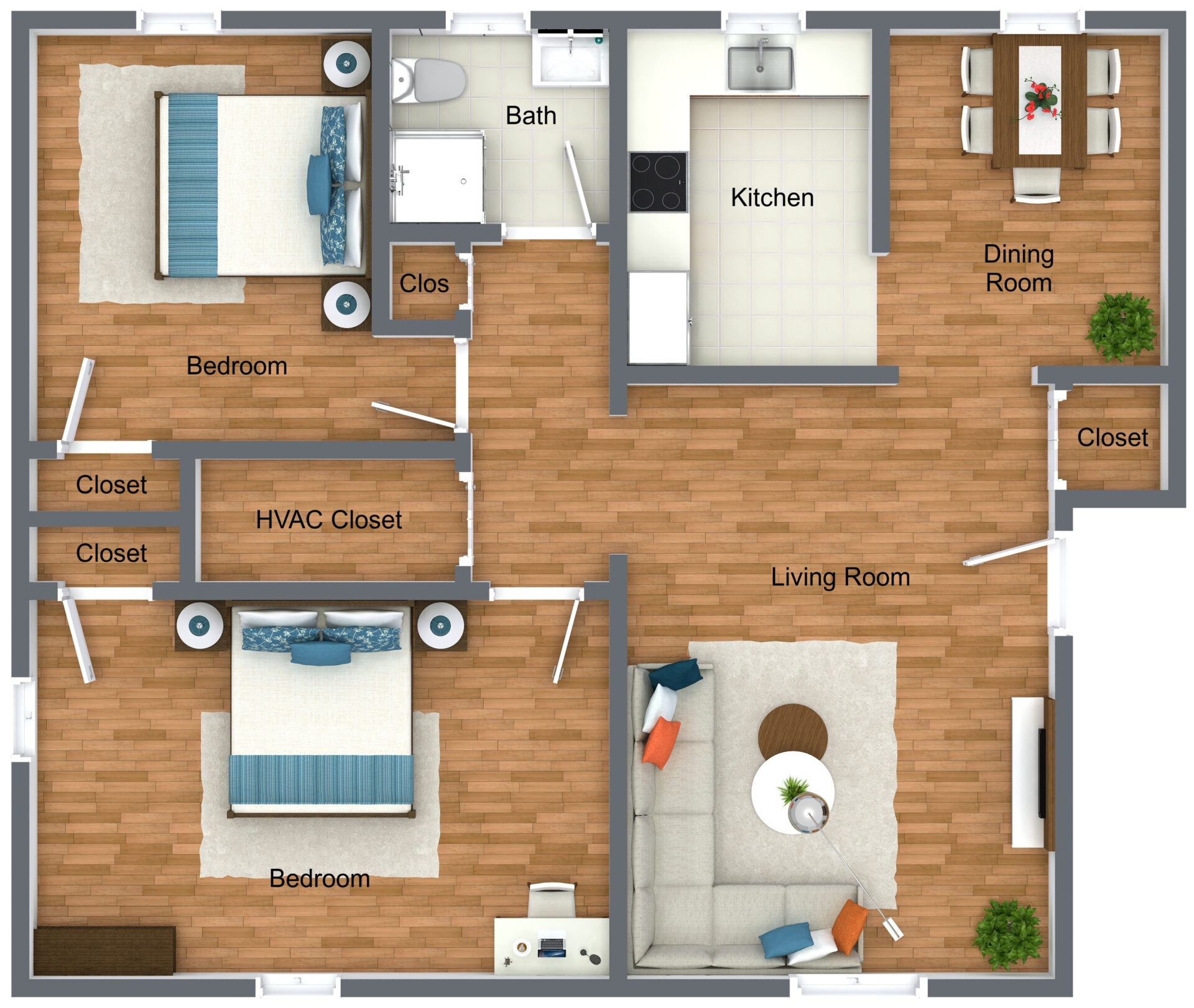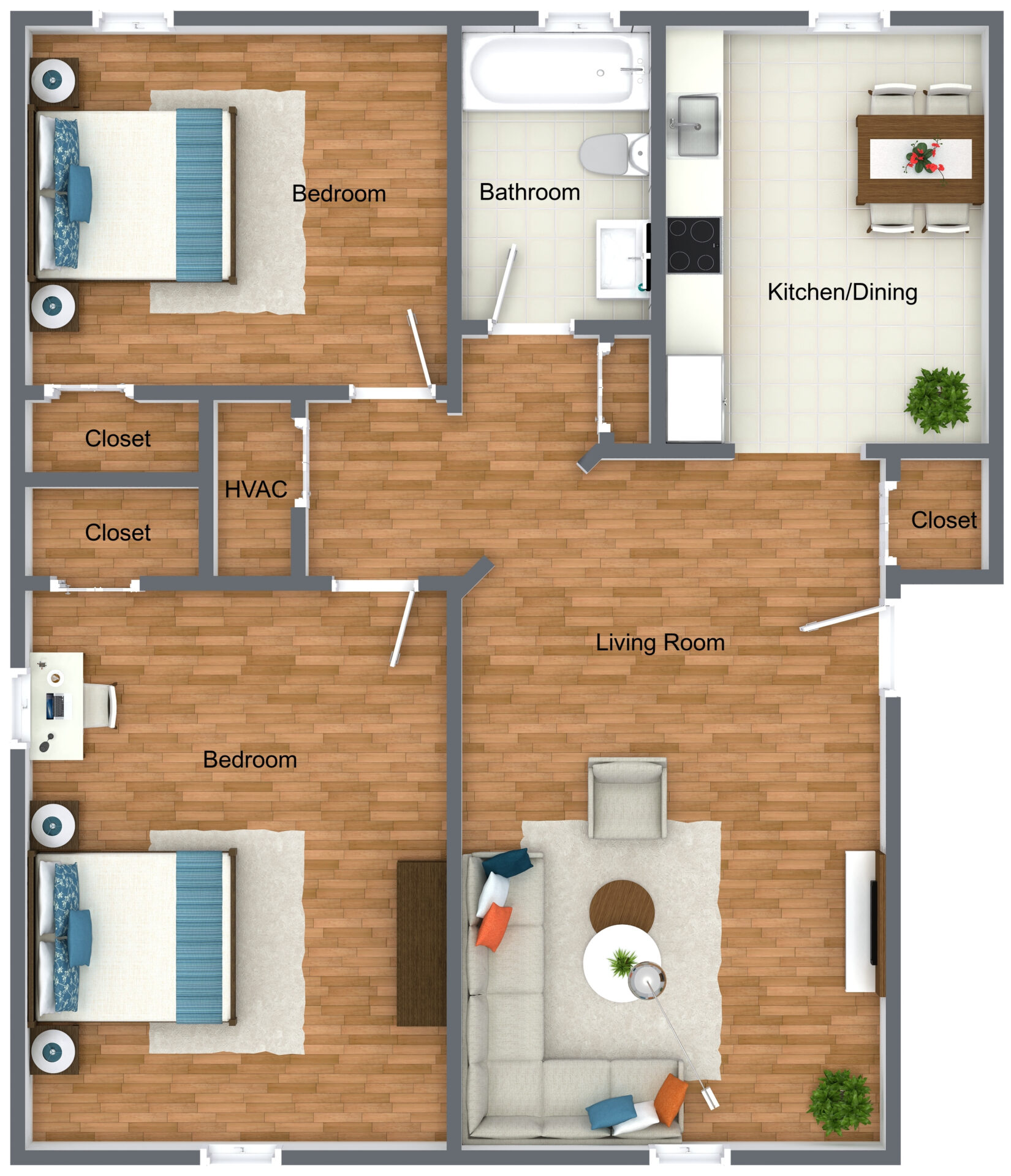 We offer affordable, income-restricted two-bedroom apartments designed for comfort and convenience, featuring spacious layouts, walk-in closets, hardwood floors, and fully equipped kitchens.